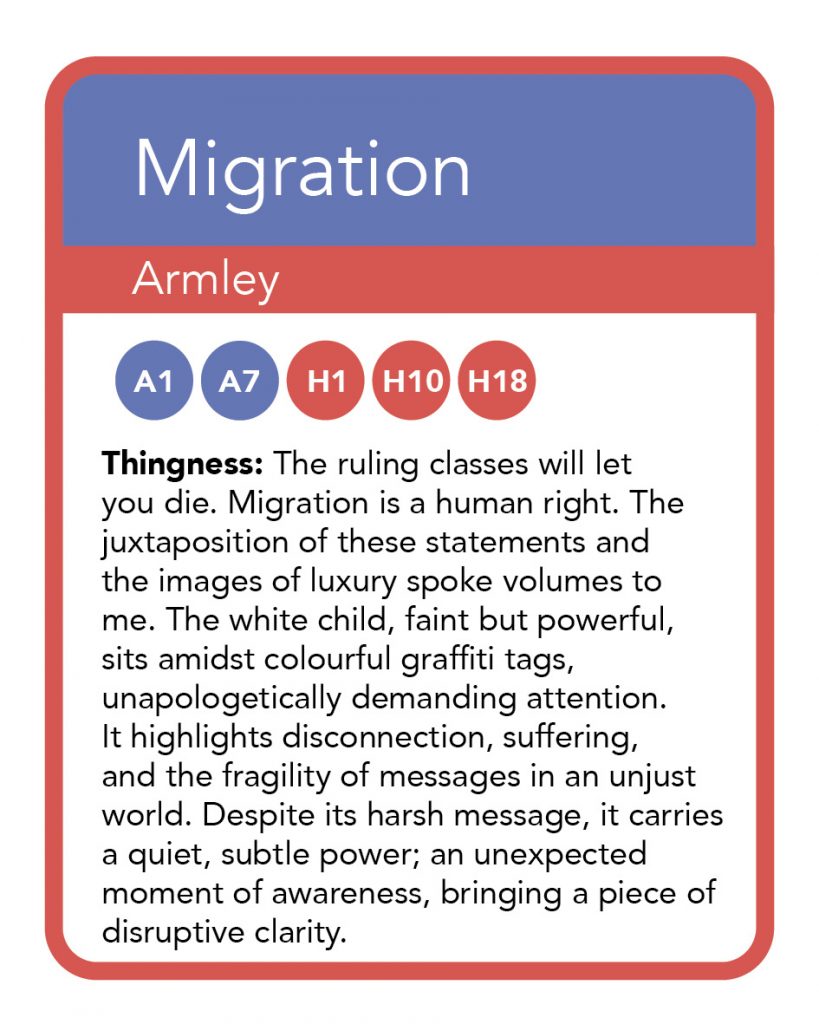 A ‘thing’ is something that is disrupted from its usual function, which demands our attention and challenges the traditional subject-object relationship. It represents a complex interplay of assemblages, involving both human and non-human relationships; it can be both affective and effective in its context. Objects, spaces and abstract conditions, both tangible and intangible, can be considered ‘things’. These can include protests, marches, makeshift living spaces, skateboarding, or any physical traces left behind such as graffiti, spontaneous memorials, desire lines, stickers, posters, lost objects or a thing that raises awareness, like ghost bikes. Even the abscence of something can be considered a thing.